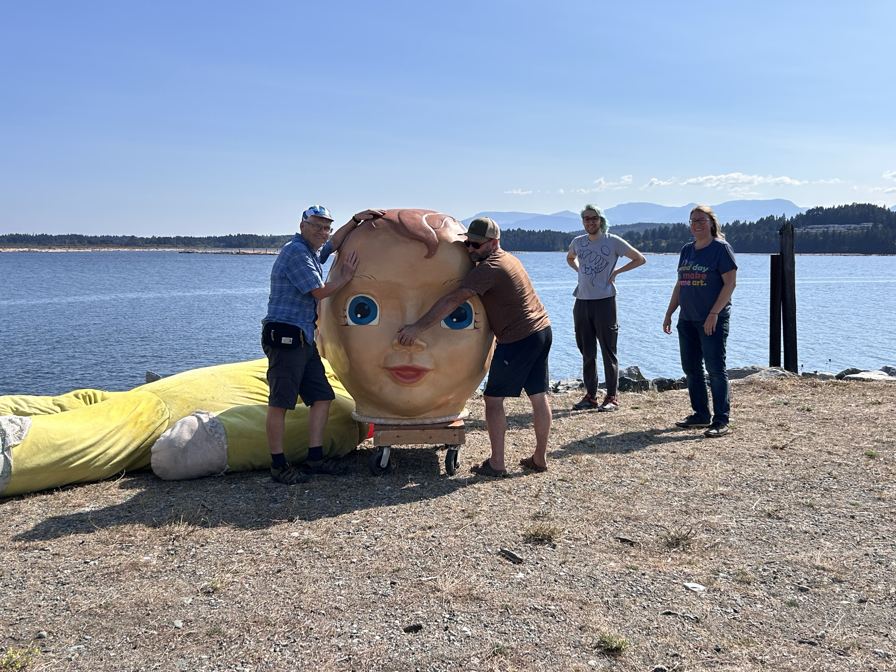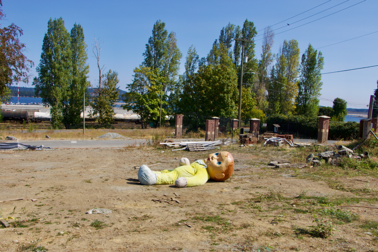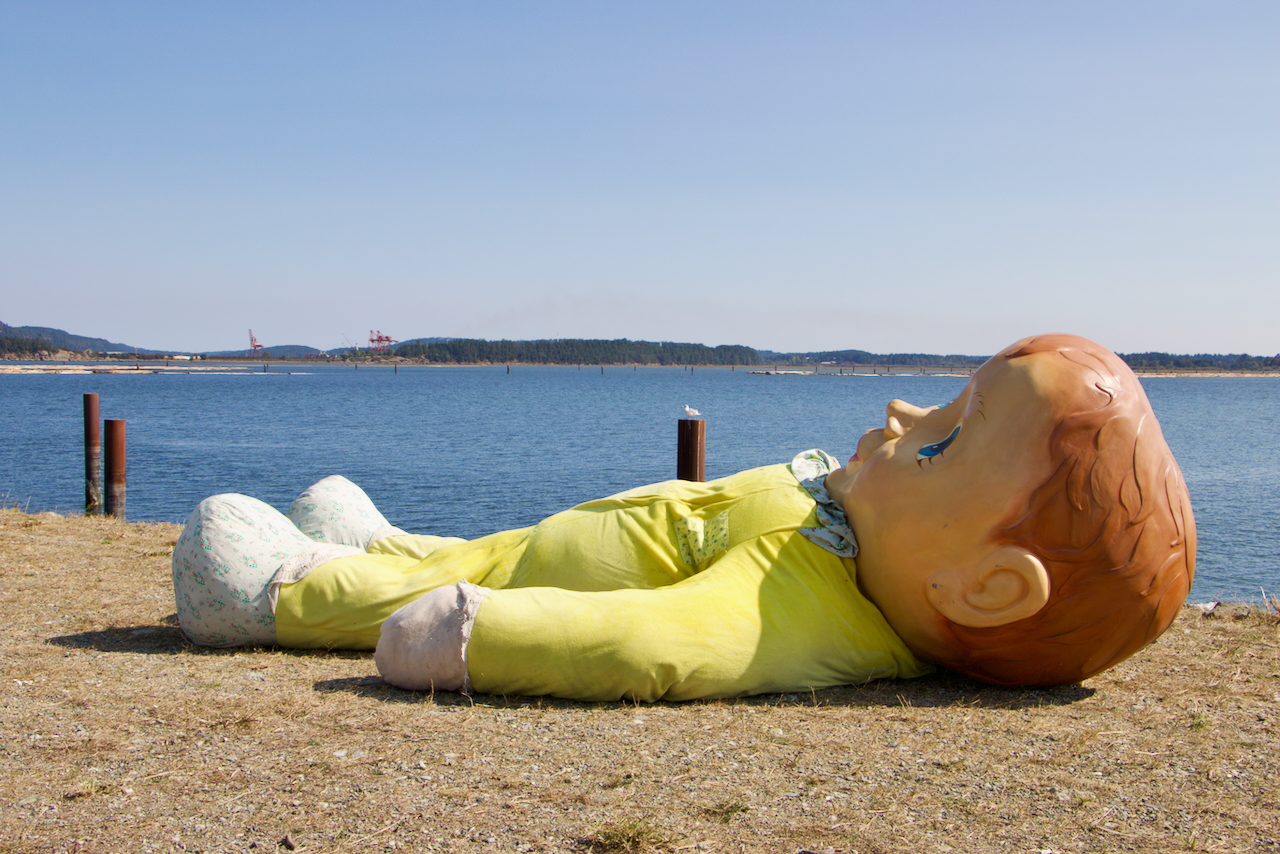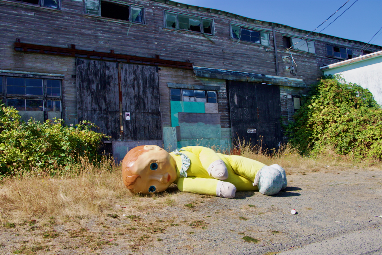 Saskatchewan artist Heather Benning’s exhibition Field-Doll-House is mediation on place in an age of increasing mobility. It brings together elements from two of the artist’s projects over the last two decades. Field Doll features a 16 ft long sculpture of a doll modelled after Benning’s own childhood doll that accompanied the her on many of her own journeys. The sculpture is displayed along with a series of photographs that document the Field Doll’s journey over the last decade of being exhibited in multiple cities across the continent.