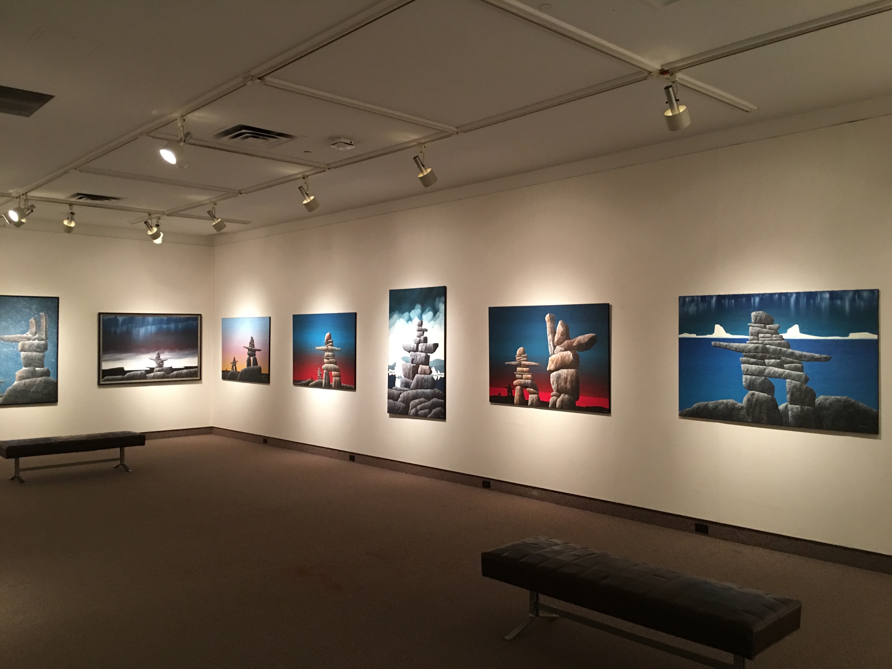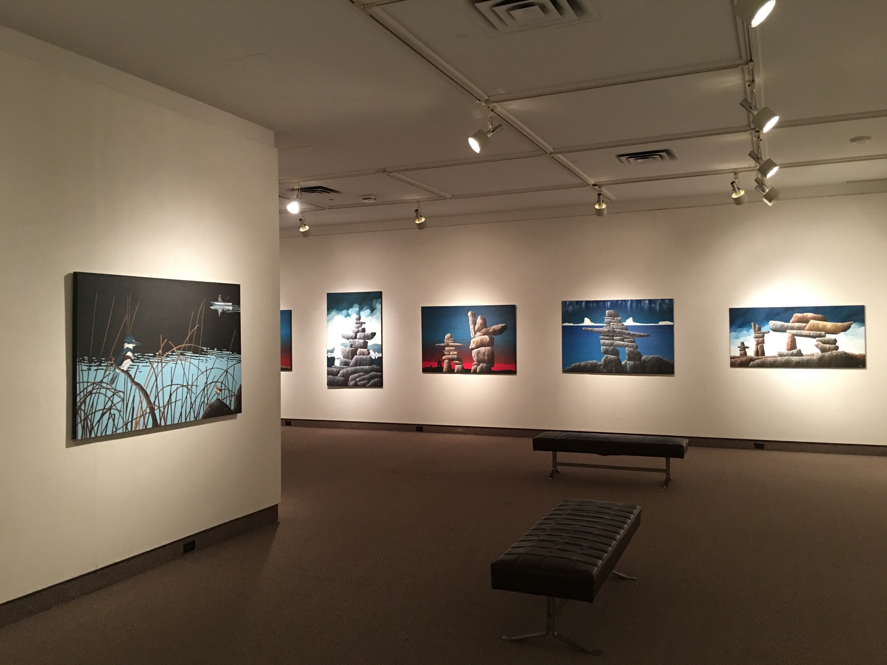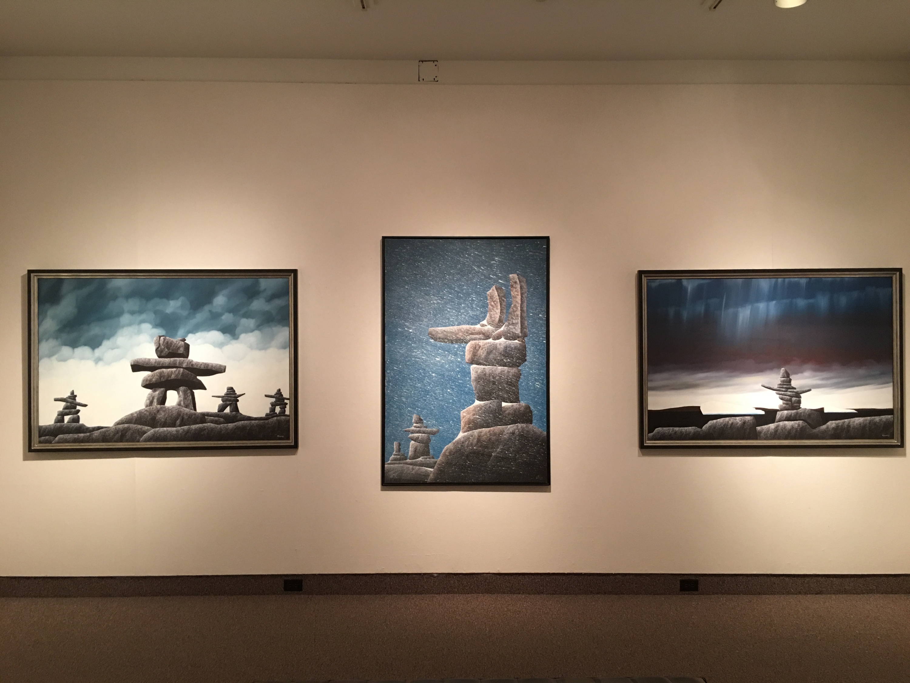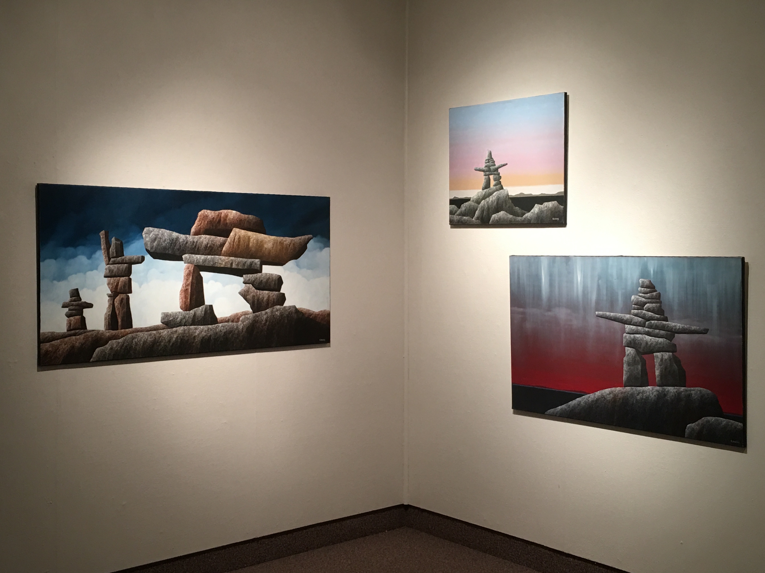 The View Gallery presents “Kirkby: Written in Stone”, an exhibition of Arctic landscape paintings by Ken Kirkby. In homage to the Inuit peoples amongst whom he lived for five years, Kirkby’s naturalistic landscapes feature inukshuk, stone markers built by the Inuit, in the shape of humans. For Kirkby, they are symbols of survival and endurance – of the land, and its people. The paintings were donated by the artist to Vancouver Island University in 2016.
