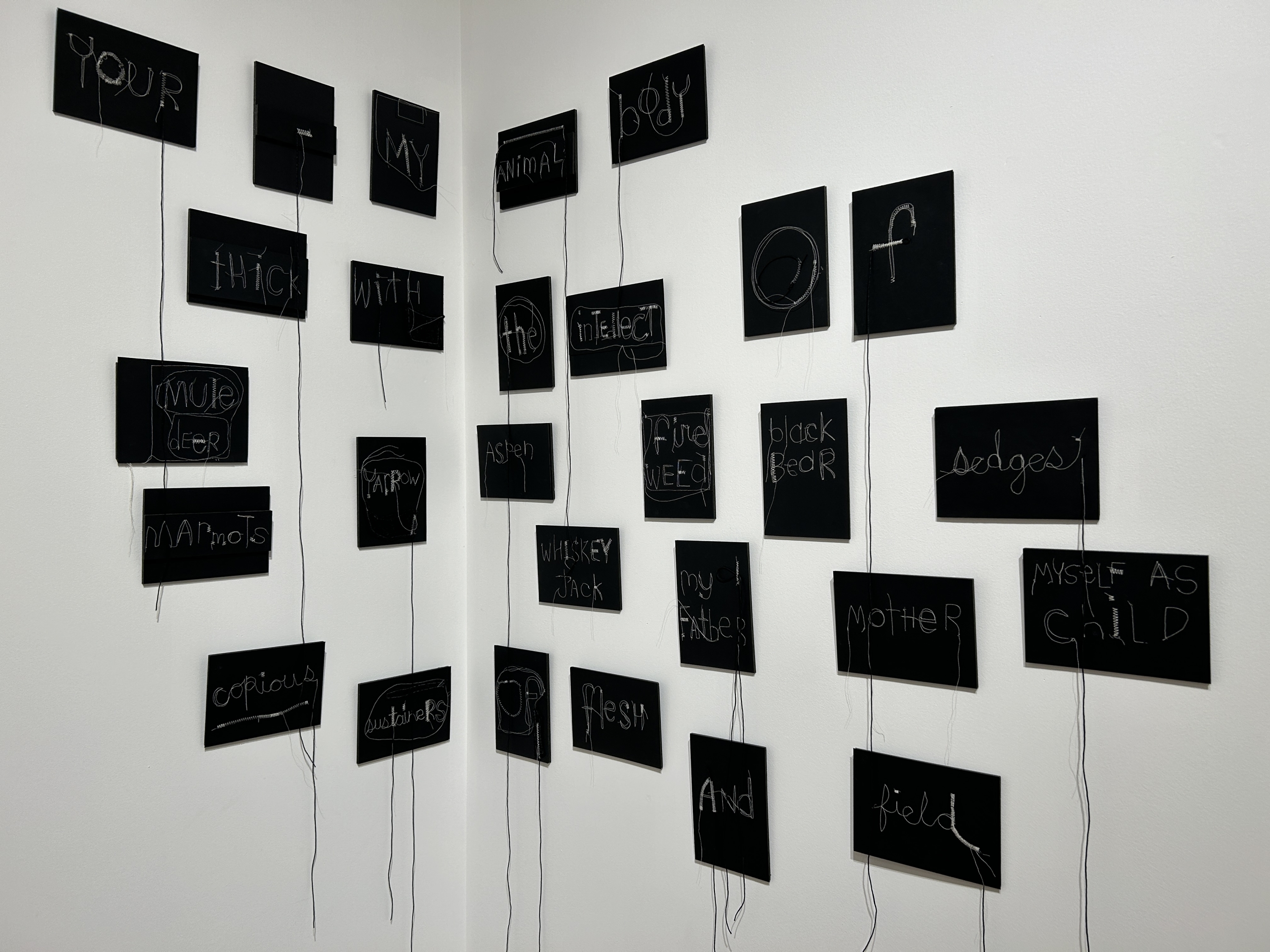 Threadbare is a body of work that explores the effects of colonial industries on interspecies displacement and ecological loss through stitchwork, embroidery, sculpture, photography, stop-motion, and performance. The project began in the summer of 2021 in an area referred to as the Deadman Valley, in British Columbia, on the Traditional Territories of the Secwepemcúl'ecw First Nations. I began a relationship with the eco-systems of the area in the fall of 2016 at an off-grid cabin on a property known as Singing Lands. On July 1st,2021 - one day following the Lytton Fire - the site was devastated by the Sparks Lake Fire. The cabin and surrounding land were close to my heart - a place where I developed a relationship with the weather, plant species, the over-population of noisy marmots, woodpeckers, wood rats, bears and lynx. The grasses, reeds, spruce and trembling aspens were a source of inspiration, attentiveness, and an outdoor studio for me when I stayed. Revisiting the site after the fire made our collective loss palpable.
