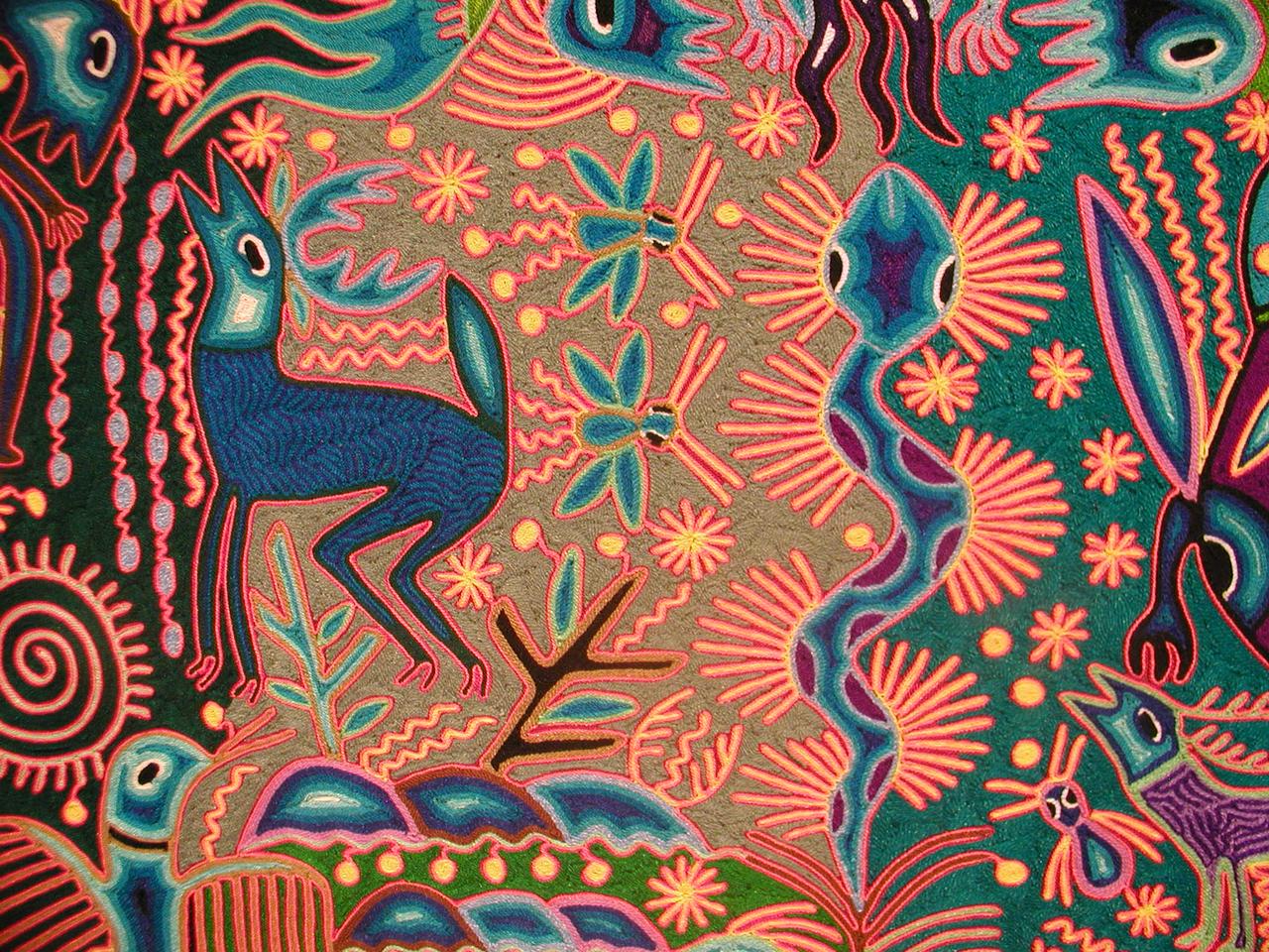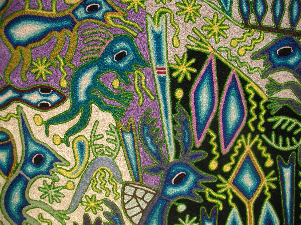 Co-presented with Artes Mexico and the Consuladi General de MexicoAn exhibition of Huichol Art by Jose Benitez Sanchez, featuring yarn paintings, photographs, objects, and garments of the Wixaritari.